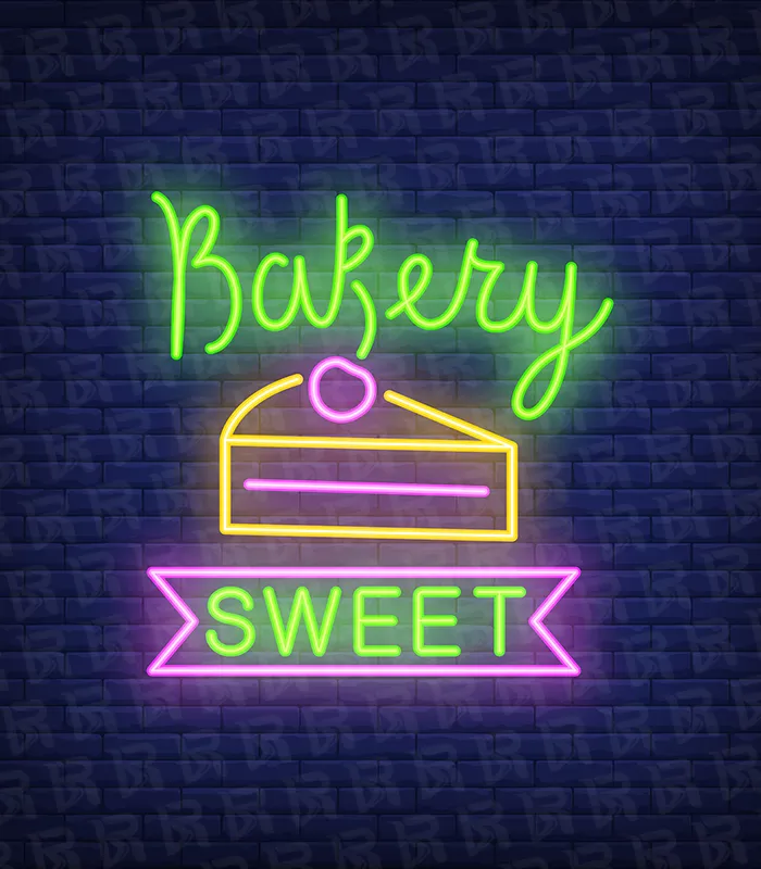 تابلو نئون آماده طرح اسلایس کیک – کد Bakery004
