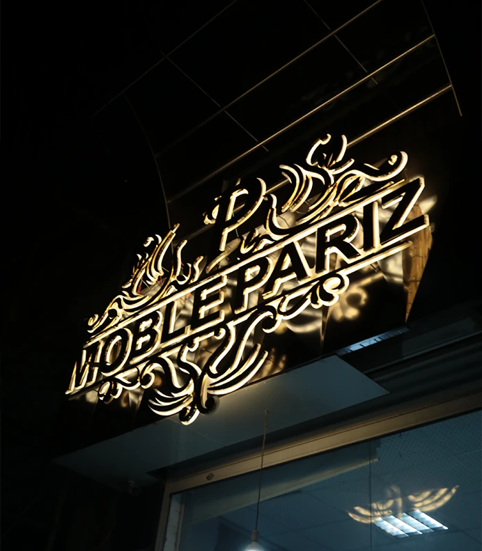 پاریز و لوگو : استیل طلایی لبه دار آینه ای