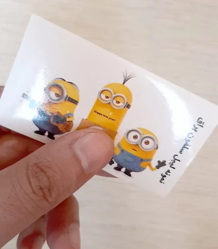 - جنس کاغذ : لیبل پشت چسب دار با روکش یووی براق یکدست.