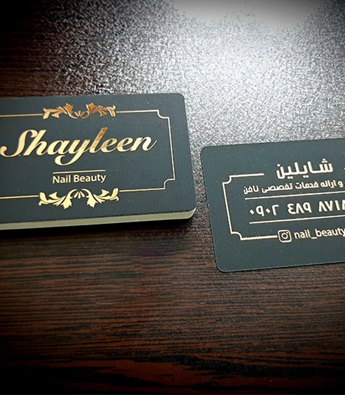 چاپ کارت ویزیت سلفون مات دورگرد طلاکوب