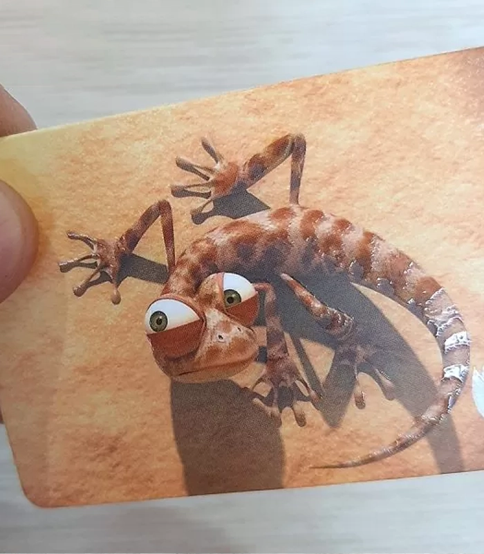 گوشه‌های این کارت دورگرد بوده که در ابعاد 9 در 6 سانتی‌متر چاپ شده و در ابعاد 8.5 در 5.5 سانتی‌متر برش می‌خورد. در این محصول خطای یووی (روی هم خوری یووی روی چاپ) از ۰/۵ تا 2 میلیمتر محتمل است.در این کارت قابلیت نوشتن با خودکار روی قسمت‌های فاقد یووی امکان پذیر می‌باشد. ضخامت این کارت باعث می‌شود بعد از برش مقدار کمی لبه زدگی در یک طرف کارت ایجاد شود.درصورت طراحی اصولی و آشنایی با یووی موضعی، می‌توانید کارت ویزیت جذابی داشته باشید.