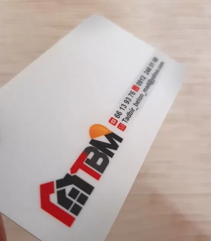 برای جلوه زیباتر طرح بر روی این کارت بهتر است از طرحهایی با زمینههای روشن یا سفید استفاده نمائید. از زمینههای پر رنگ و تیره در طراحی این محصول استفاده نکنید زیرا احتمال ایجاد حباب در زیر روکش و بلند شدن لبههای روکش بالا میرود و محصول نهایی رضایت شما را برآورده نخواهد کرد.کارت ویزیت لمینت مات دورگرد ویزیتی بر خلاف کارتهای براق، ظاهری رسمیتر و جلوهای شیکتر دارند. گوشههای این کارت ویزیت به صورت دورگرد است و در ابعاد 8.5 در 4.8 سانتیمتر چاپ میشود. پس از چاپ و روکش کارت ویزیت در ابعاد 8 در 4.3 سانتیمتر برش میخورد.کارت ویزیت لمینت مات ویزیتی به سختی تا میشود و مقاومت بسیار زیادی در برابر پاره شدن دارد. روکش لمینت دارای استحکام و ضخامت بیشتری نسبت به روکش سلفون میباشد.