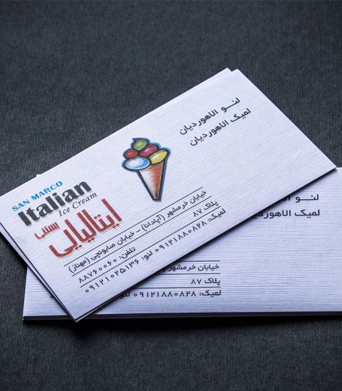 - نوع چاپ: چاپ کارت ویزیت کتان آلمان در فرم عمومی بصورت تمام رنگی بوده و طرح های تکرنگ و 2 رنگ هم در همین فرم با همان قیمت چاپ میشود.